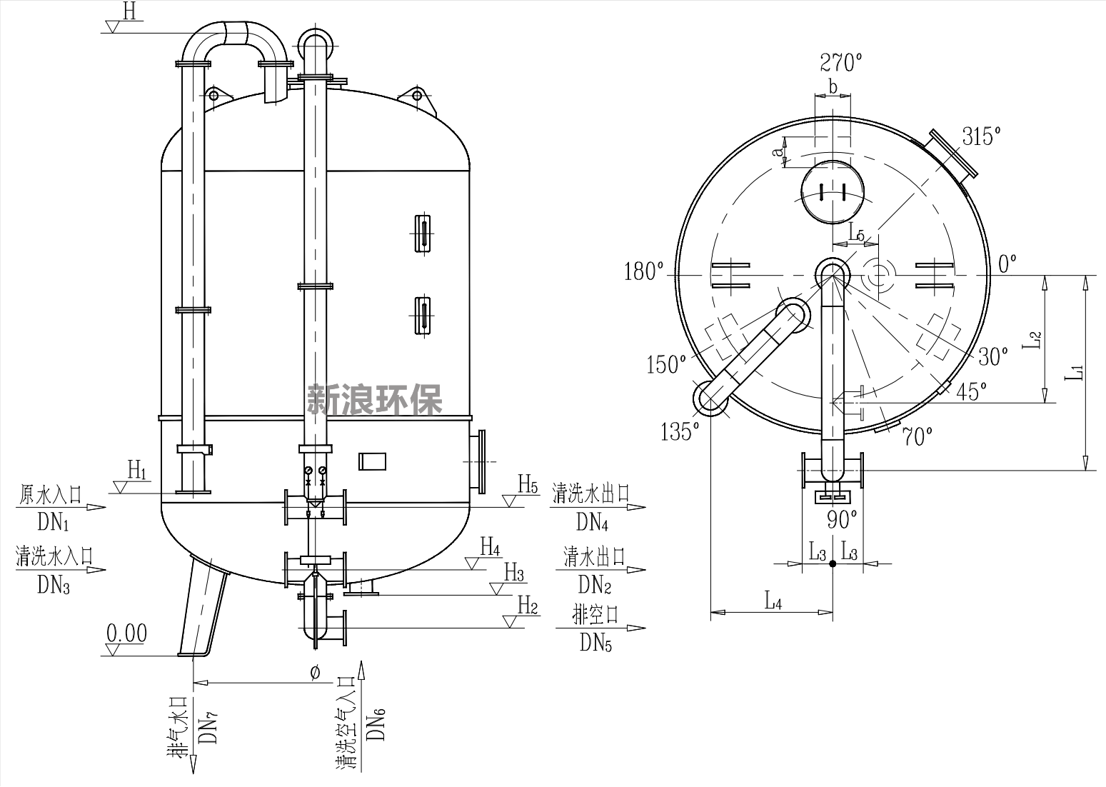 2、設(shè)備所有接口法蘭壓力等級為PN1.0MPa;
